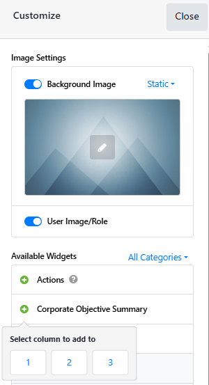The Corporate Objective Summary Widget will now appear on your homepage. You can drag and drop the widget to move it if desired.