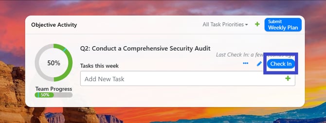 Checking in and updating your status on your objectives should be completed regularly. Best practice is to update your progress and add a detailed status update weekly or bi-weekly.