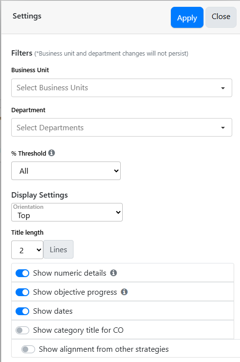 Note: Show alignment from other strategies is only used if you are utilizing the Strategy to Strategy Alignment in Inspire.
