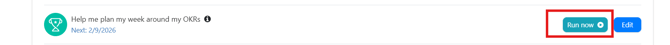 Note: You can run the Plan agent on demand by clicking on 'Run Now' to receive task suggestions outside the scheduled agent cadence.
