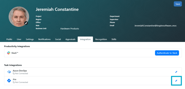 - Navigate to the Integration tab, then click the Edit button for Jira.