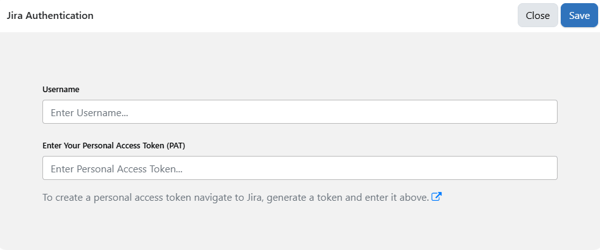 - Return to the Jira Authentication setup in Inspire and paste your Jira Personal Access Token (PAT) in the token field. Click Save when finished.