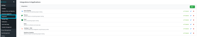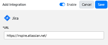 - The Integrations page will display. Click the Add button and then select Jira. Enter the URL for your organization's Jira and click Save.