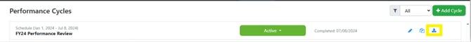 - Select the Download icon for the Performance Cycle (Highlighted in Yellow below)