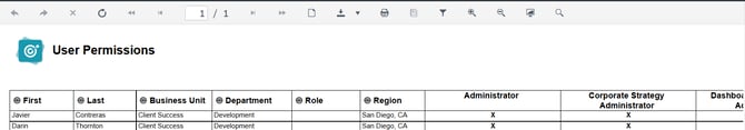 Administrators and HR Administrators have the ability to view who at your organization has Administrative permissions in Inspire. The filter allows you to filter by Business Unit or Department.