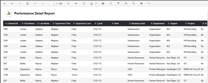 This report provides a detailed view of user's performance data during a specific Performance Cycle.