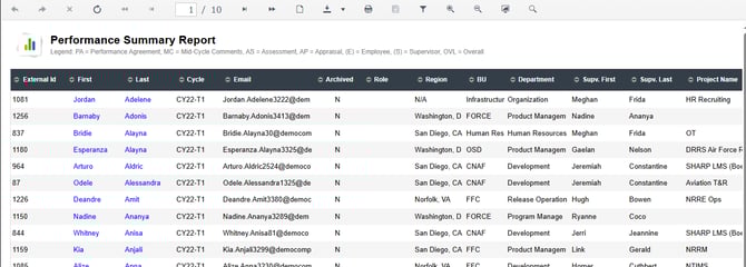 Provides a summary of all users' performance data during a specific Performance Cycle so an Administrator can easily review the status of all employee's data within the cycle.