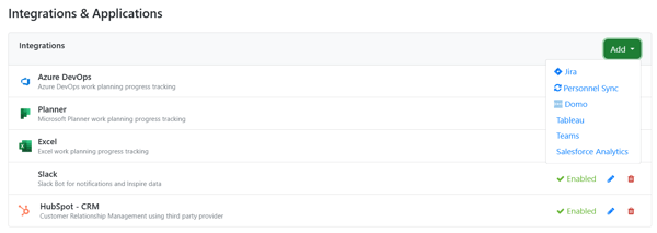 Click the Add button in the integrations section, then select Salesforce Analytics.