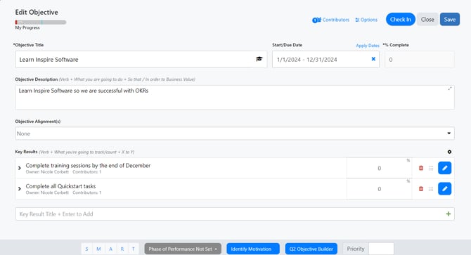 - Enter an Objective and Key Result(s)