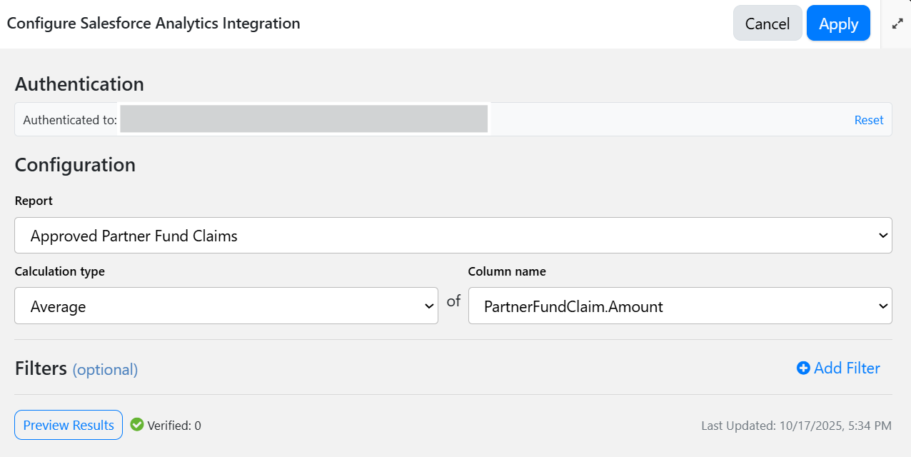 Click Preview Results to verify the data is accurate, and then click Apply to save the integration.