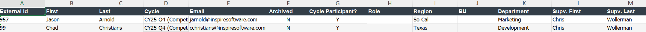 This report provides a summary of all users' performance data during a specific Performance Cycle so an Administrator can easily review the status of all employee's data within the cycle.