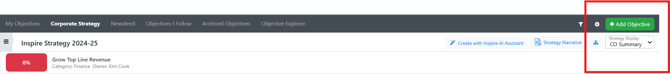 - Option 1: Utilize the Waffle Menu in the upper right corner of Inspire, select Objectives, then Corporate Strategy.
