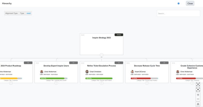 The hierarchy view will open, displaying the strategy and all aligned objectives